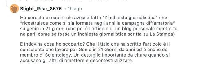 Probabilmente l’utente Reddit @Slight_Rise_8676 è in qualche modo parte del gruppo organizzato delle due (o più) persone che sono tra gli artefici di quella campagna di black PR, tanto tenace quanto incomprensibile nell’acredine che la connota; o, quanto meno, si approvvigiona di informazioni da quelle fonti, sulla cui credibilità e affidabilità preferisco non pronunciarmi.
